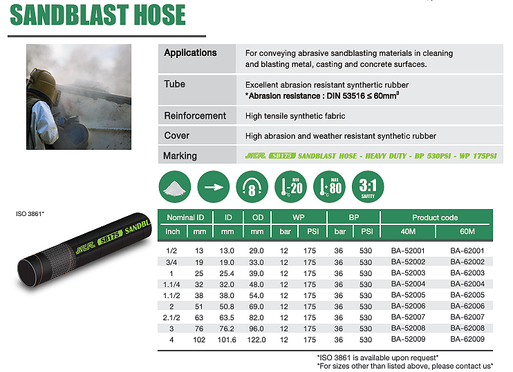 Ideal for conveying abrasive sandblasting materials in cleaning and blasting metal, casting and concrete surfaces.