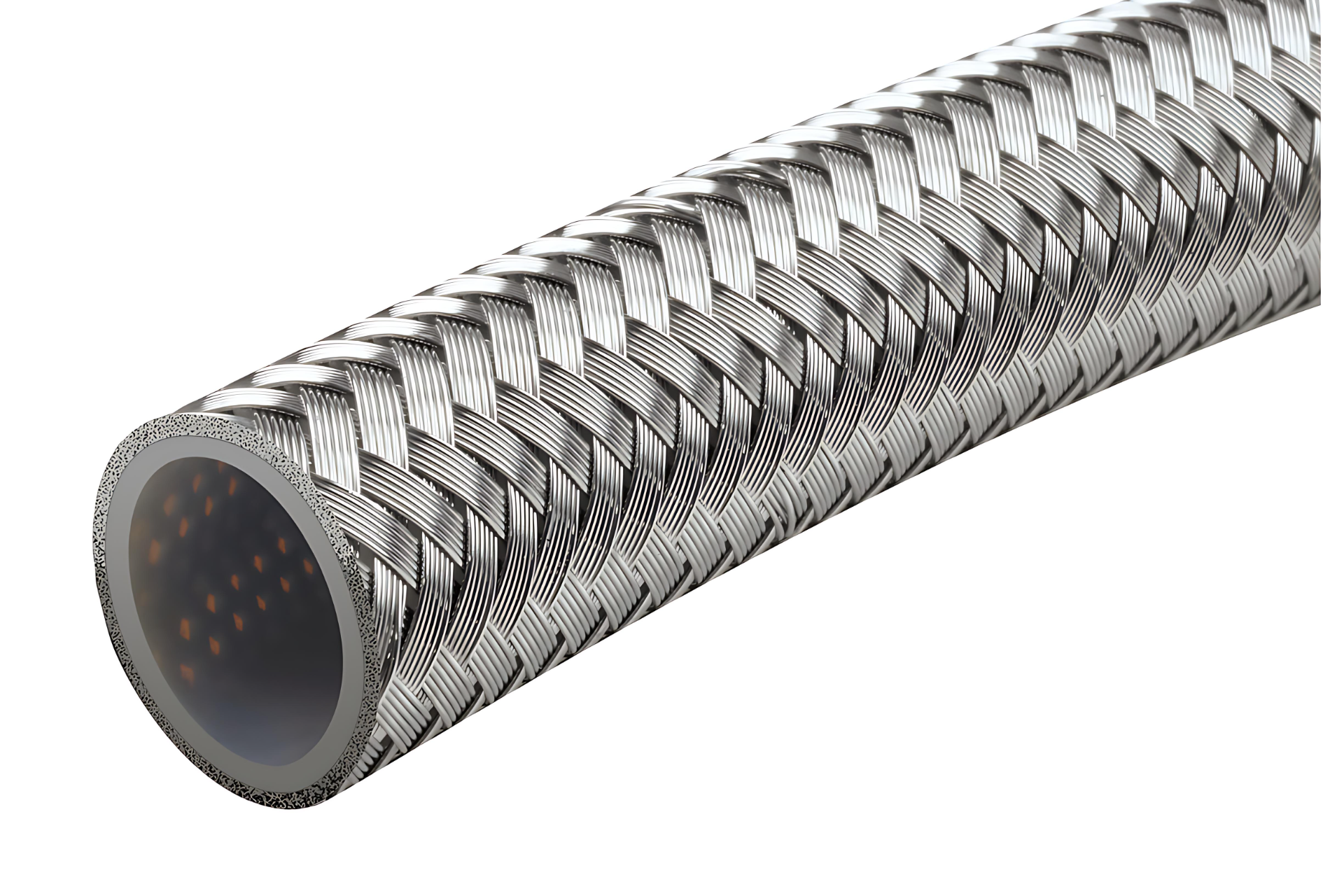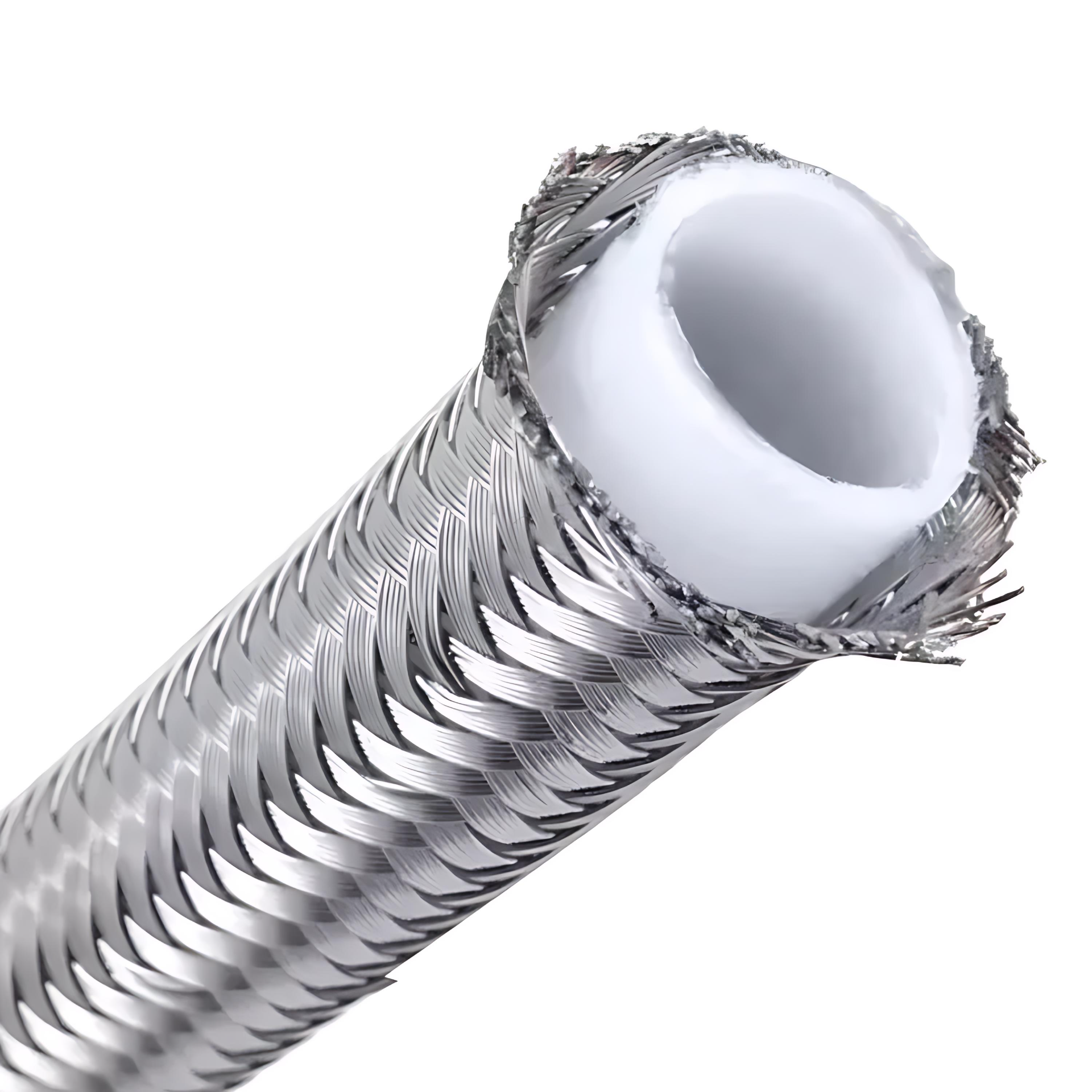 Inner Core: 100% PTFE (Teflon) – smooth bore for clean flow